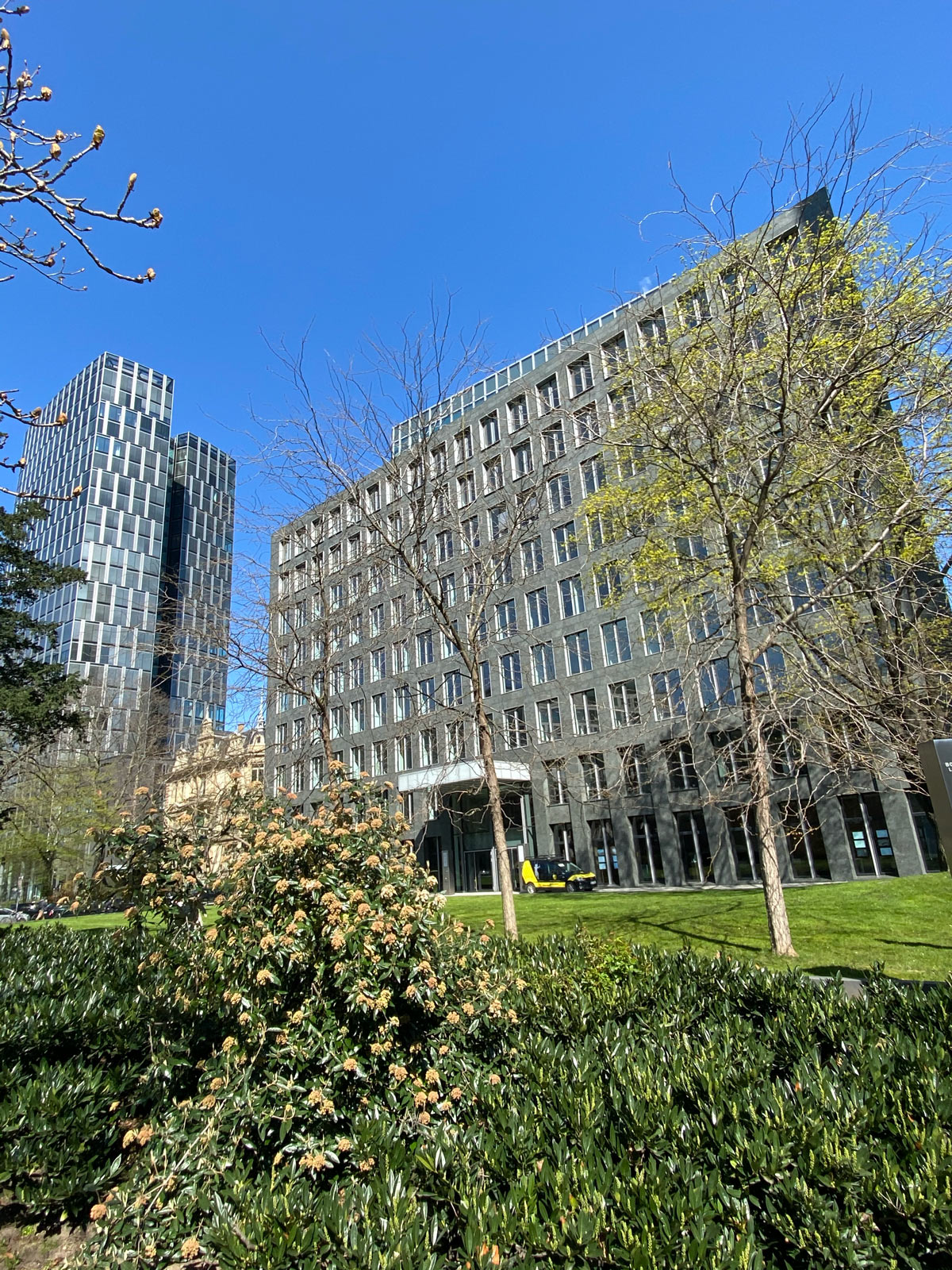 Seit 2003 bereichert das Bürogebäude direkt an der Bockenheimer Landstraße das Erscheinungsbild des Frankfurter Westends. Jo. Franzke Architekten planten das ca. 20.000 Quadratmeter große Gebäude, das nur wenige Gehminuten vom Opernplatz und von der „Freßgass“ – die Bezeichnung der Frankfurter für den Straßenzug Kalbächer Gasse sowie Große Bockenheimer Straße – entfernt ist und den Ansprüchen an modernes Arbeiten mehr als gerecht wird.