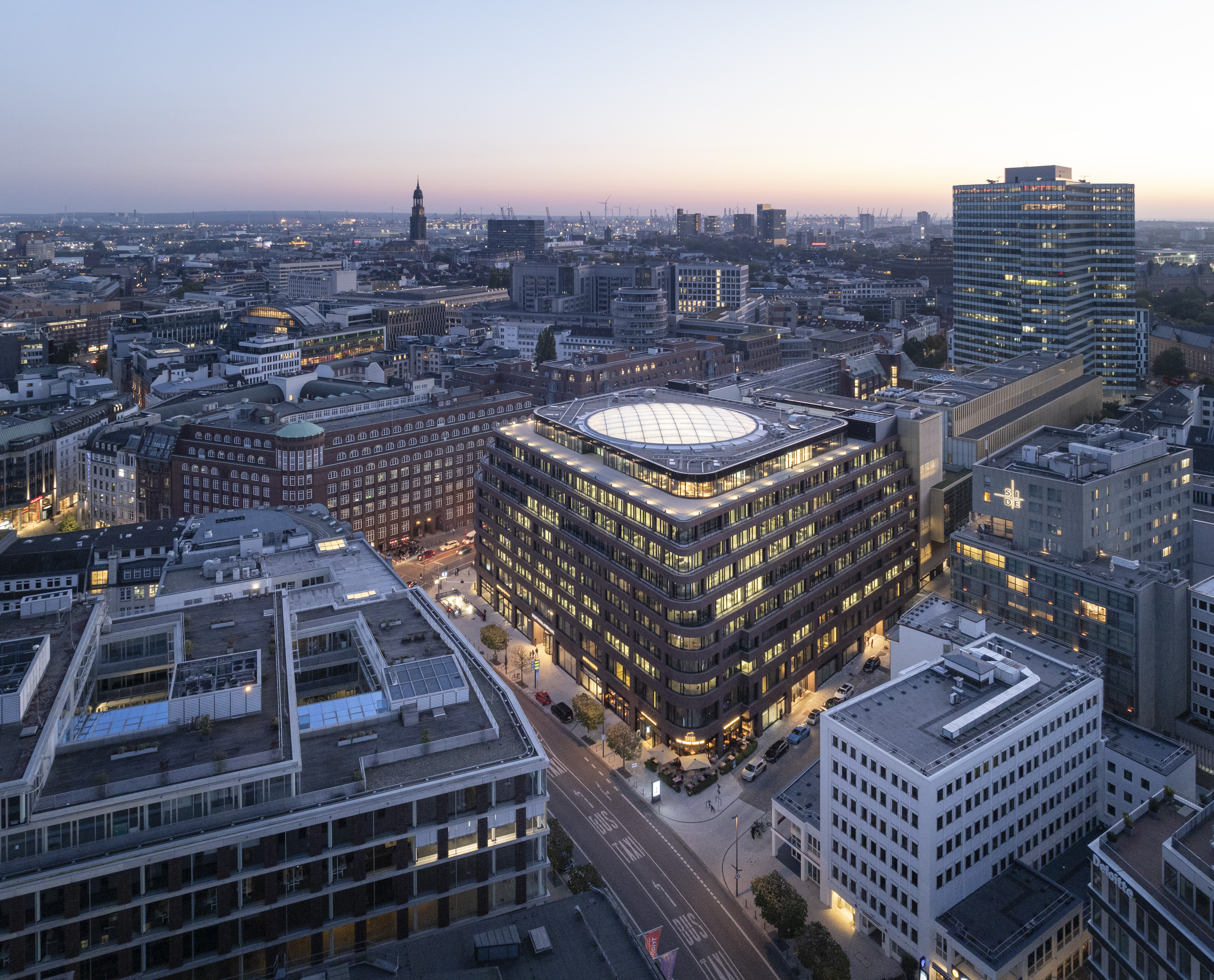 Inmitten der Hamburger Innenstadt, am Gänsemarkt, ist mit dem geschichtsträchtigen Neubau des DEUTSCHLANDHAUSES eine der bedeutendsten Projektentwicklungen Hamburgs der letzten Jahre umgesetzt worden. Der herausragende Entwurf von Hadi Teherani setzt hierbei neue Maßstäbe und greift die Architektur des traditionellen Vorgängerbaus auf. Der Neubau bietet auf ca. 41.500 Quadratmeter BGF attraktive Flächen für die neue Zentrale der Hamburger Sparkasse (Haspa), mit ergänzenden Nutzungen (Gastronomie, Retail und Wohnen).