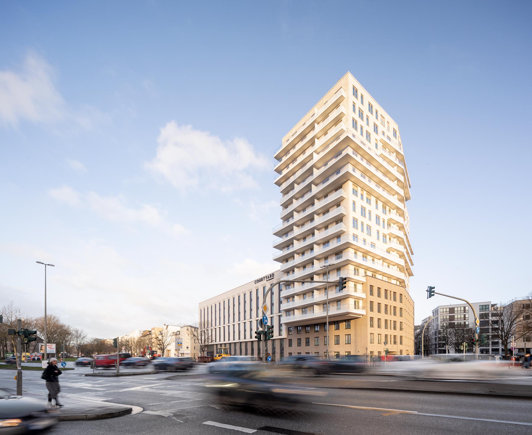 Neben dem 113 Wohnungen umfassenden Wohnturm ist das Hotel Courtyard by Marriott Hamburg City sichtbares Aushängeschild dieses Ensembles. Das 4-Sterne- Hotel bietet insgesamt 277 Zimmer, die für Geschäftswie Freizeitreisende ein interessantes Angebot darstellen.