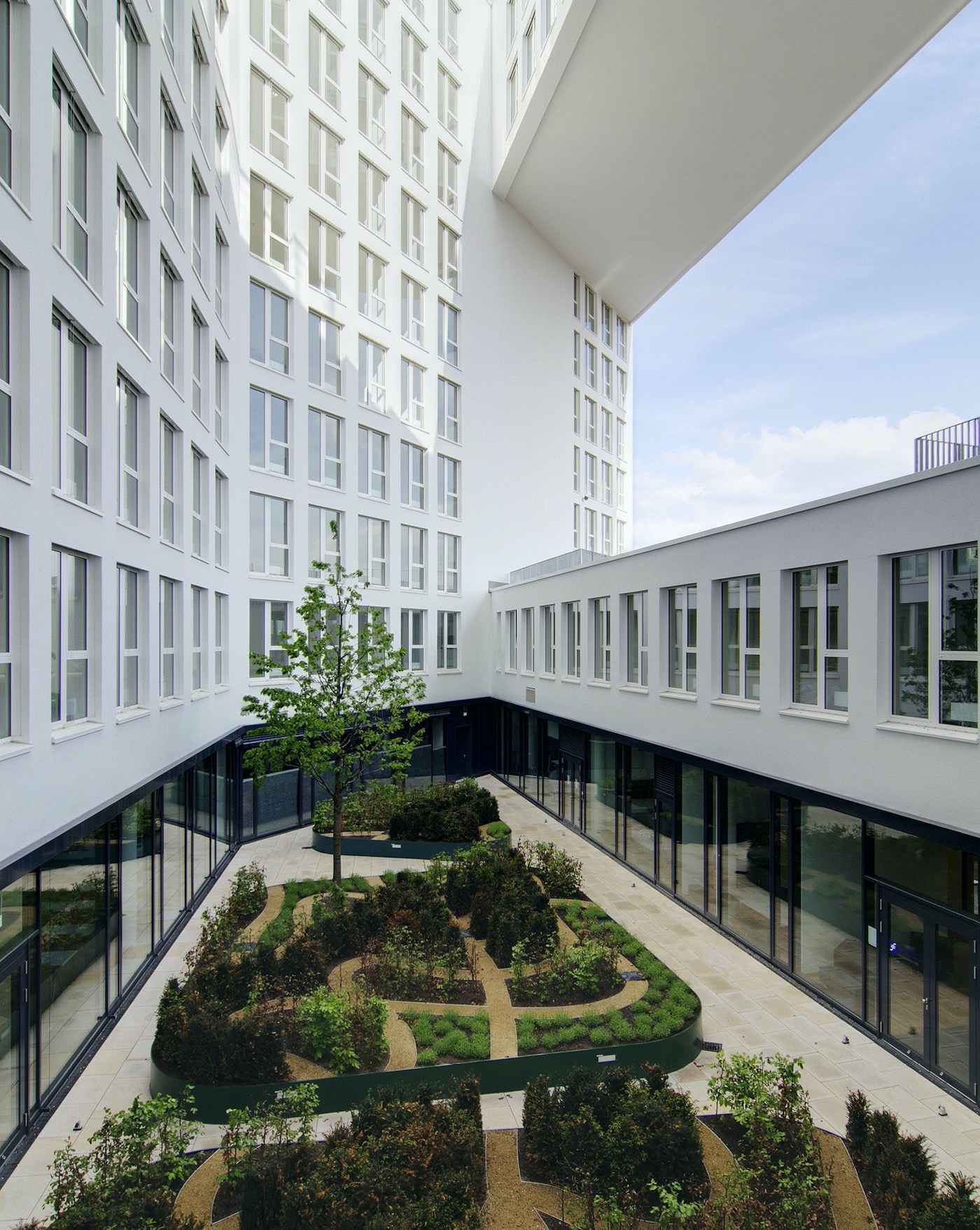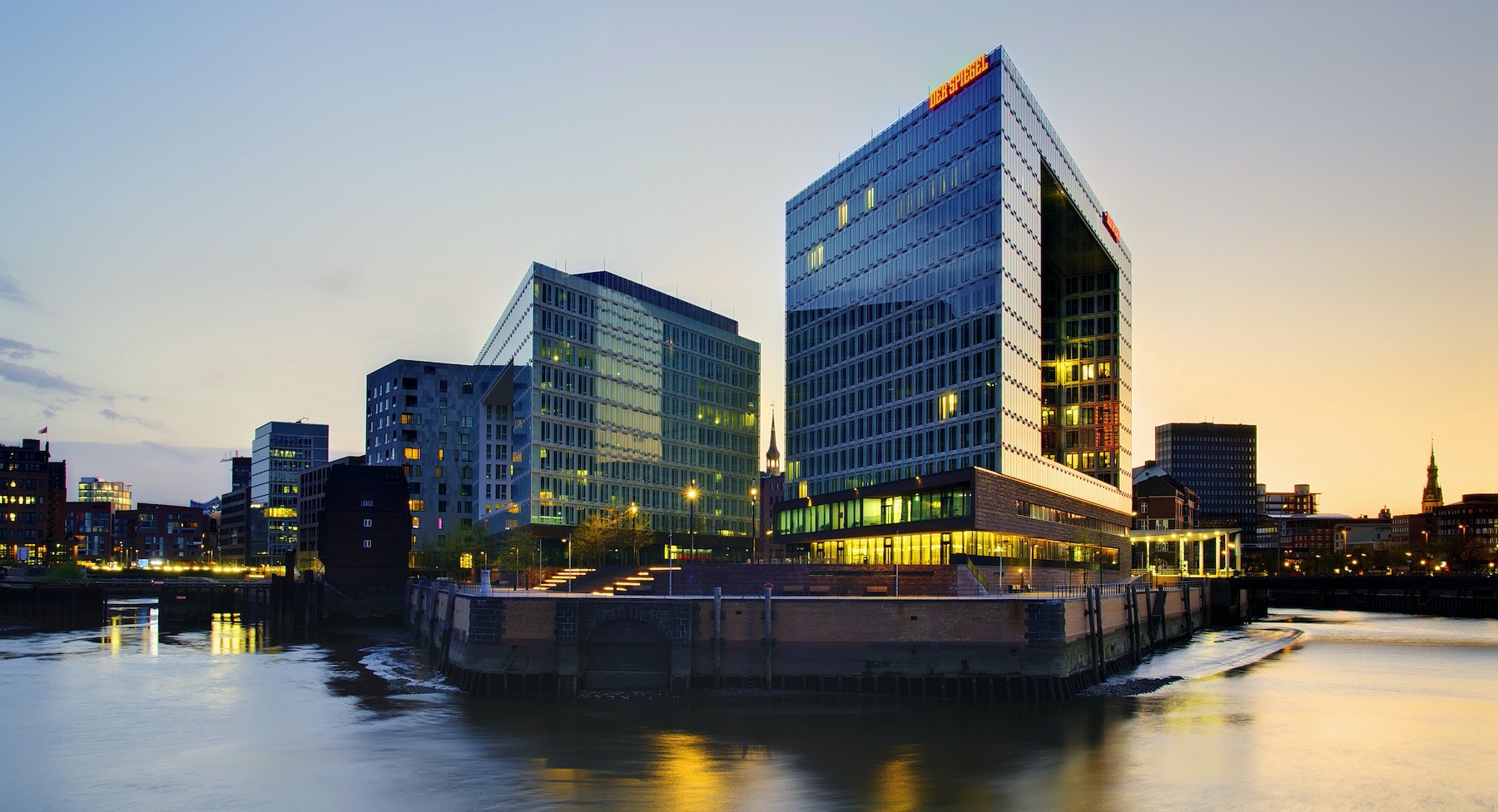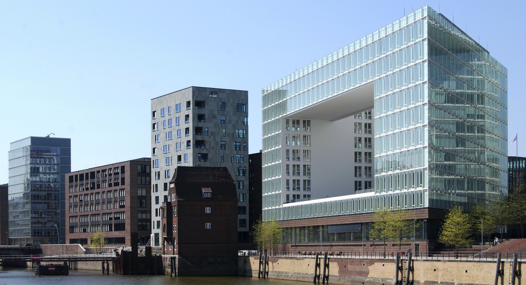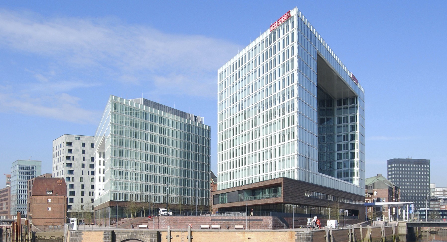 Dominant in terms of sheer size and transparent in its use of materials, the office and commercial building opens up to both the city centre and the Speicherstadt districts. The building comprises a red brickwork plinth to create the visual connection with the historic Speicherstadt warehouse buildings and a glazed double façade with full-height windows which sets contemporary accents within the emerging HafenCity area.