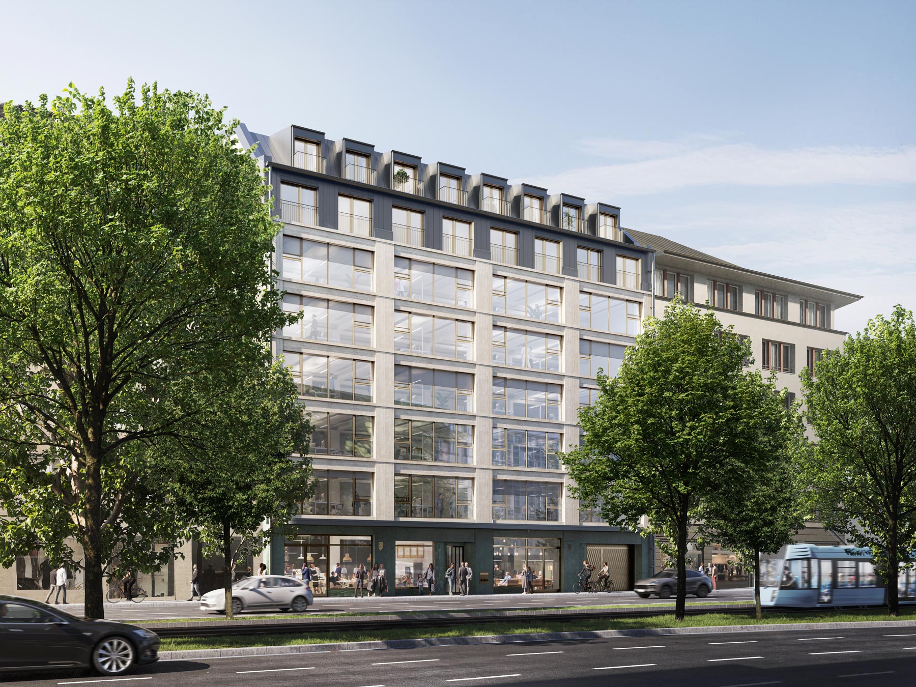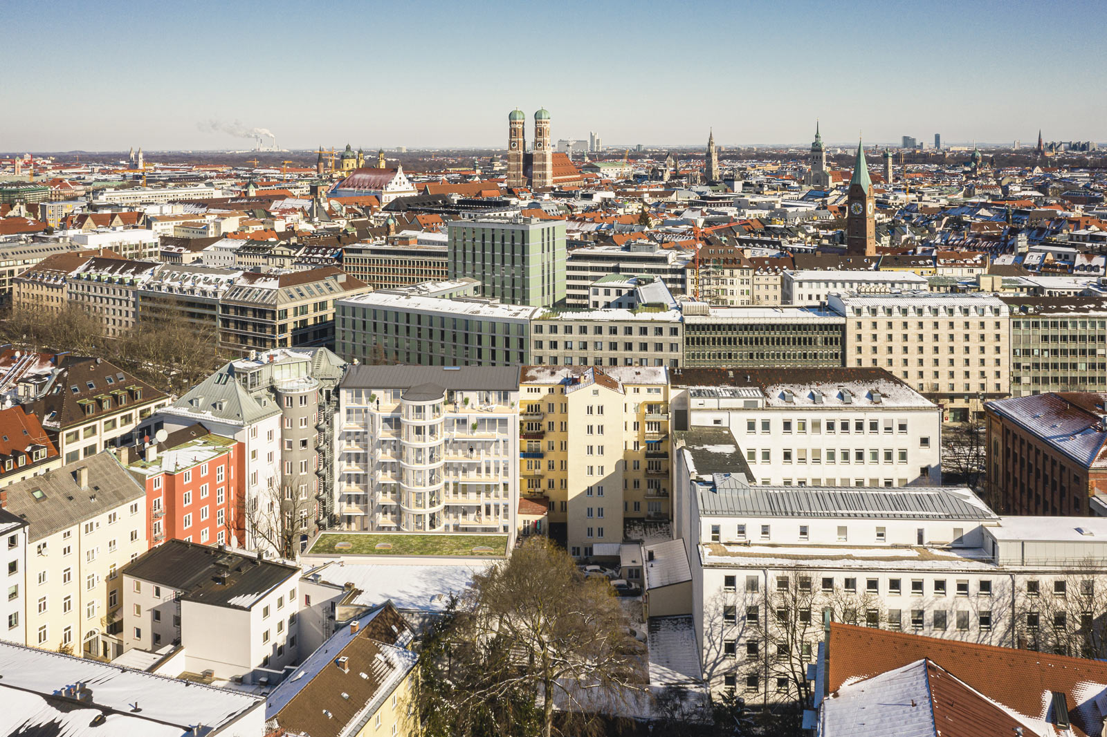 The FRANZ residential and commercial building with around 5,000 square meters of rental space, which will mainly be used for offices, is located in the immediate vicinity of the famous Stachus and has been completely revitalized by ABG and supplemented by a new building in the inner courtyard. In addition to the office space, there are eight attractive penthouse apartments on the upper floors with unique views over the city and the Alps.