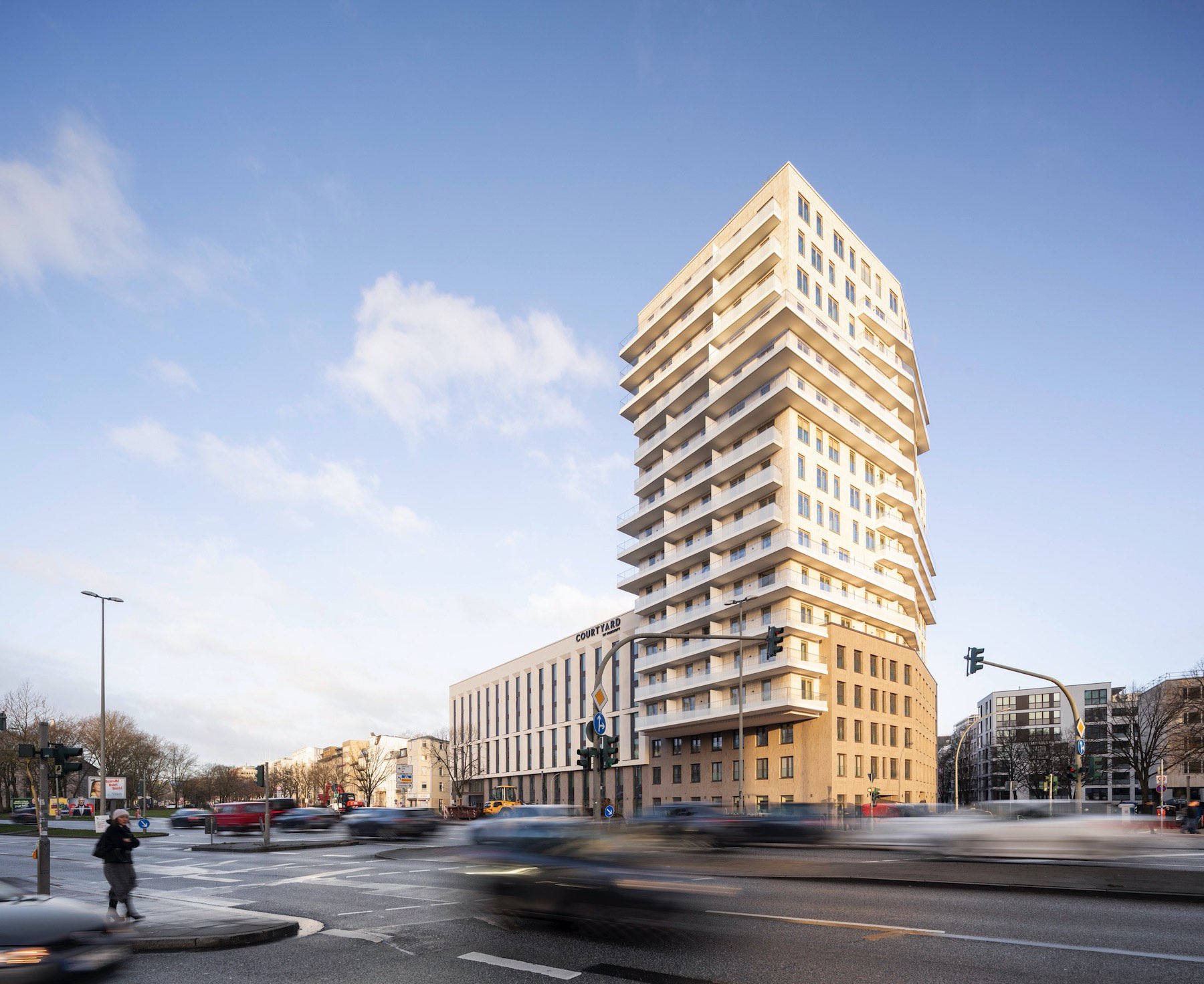 Adjacent to the residential tower with its 113 apartments, the Courtyard by Marriott Hamburg City Hotel serves as a prominent landmark of this ensemble. The 4-star hotel offers a total of 277 rooms, providing an appealing option for both business and leisure travelers.