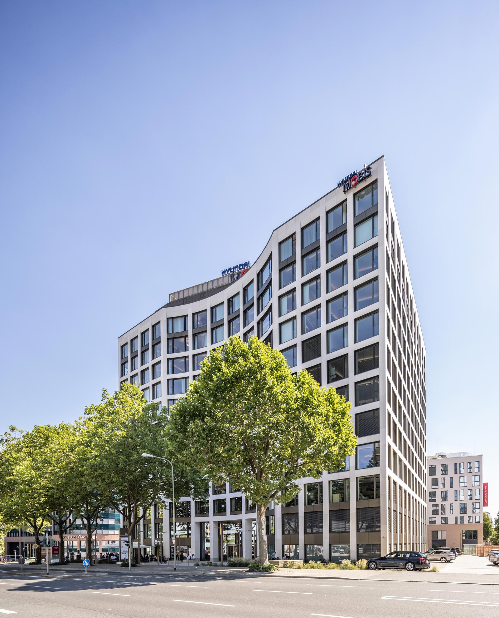 The twelve-storey SKY with its striking natural stone façade has a total rental space of around 19,800 square meters. The building was constructed in 1989 and extensively revitalized in 2021/2022 and is now of new-build quality. SKY is centrally located in the business center of Eschborn, just a few meters from the city limits of Frankfurt and the Eschborn-Süd S-Bahn station. As a result, the location has good connections to the nearby highway. As Eschborn's first office tower with its own roof terrace, the SKY offers a magnificent panoramic view of the Frankfurt skyline.