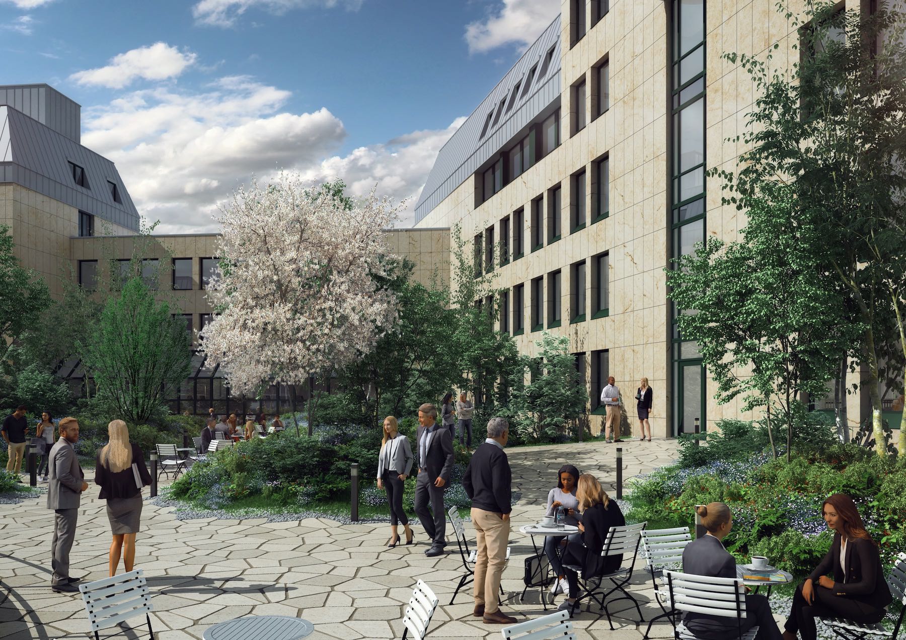 Located in the heart of urban Düsseldorf-Derendorf, YORCKS emerges as a spacious office destination with a campus-like atmosphere. Following its modernization, the architectural classic, featuring a bright natural stone façade, now shines with a timeless aesthetic. Its straightforward building design offers numerous flexible usage options, such as tailor-made house-in-house solutions with private, prestigious entrances. The City of Düsseldorf has leased significant areas long-term for various purposes, including use by the adult education center (VHS). Additionally, YORCKS features ample space for retail and dining options, as well as specialized uses like the fitness facilities of long-term tenant FitX.
