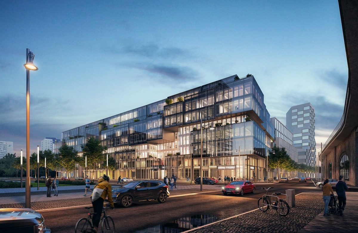Der Neubau VoltAir Berlin etabliert mit seiner expressiven Architektur einen wichtigen und ebenso anziehenden Bürostandort zwischen Alexanderplatz und Mediaspree. Das VoltAir ist eine Landmark-Immobilie auf 6.500 m2 Grundfläche mit fünf separaten Eingängen und zwei repräsentativen Lobbys mit Zugängen in den großzügigen und begrünten Innenhof. Die Immobilie umfasst im Erdgeschoss und den sieben Obergeschossen insgesamt rund 30.000 m2 modernste Mietflächen. Eine offen gestaltete Innenarchitektur im Loft-Style mit sichtbaren Betonflächen und Technikinstallationen bietet ein breites Spektrum und hohe Flexibilität für die Raumgestaltung. Das Gebäude verfügt über zahlreiche Balkone und Terrassen im Bereich der Außen- und Innenhoffassaden mit mehr als 2.000 m2 Fläche. Drei Dachterrassen mit jeweils 100 m2 Fläche und interessanten Blickperspektiven über die Umgebung runden die Architektur elegant ab. Die Tiefgarage umfasst mehr als 90 Stellplätze. Mehrere S- und U-Bahnhöfe sowie Bushaltestellen sind im Umkreis von rund 200 m fußläufig leicht zu erreichen. Zur Realisierung des Komplexes wurden 21.000 m3 Beton und 4.000 Tonnen Stahl verbaut. Der Baubeginn erfolgte Ende 2018. Das VoltAir ist zertifiziert nach LEED Gold und WiredScore Gold. Die Fertigstellung wird im Sommer 2022 erfolgen.